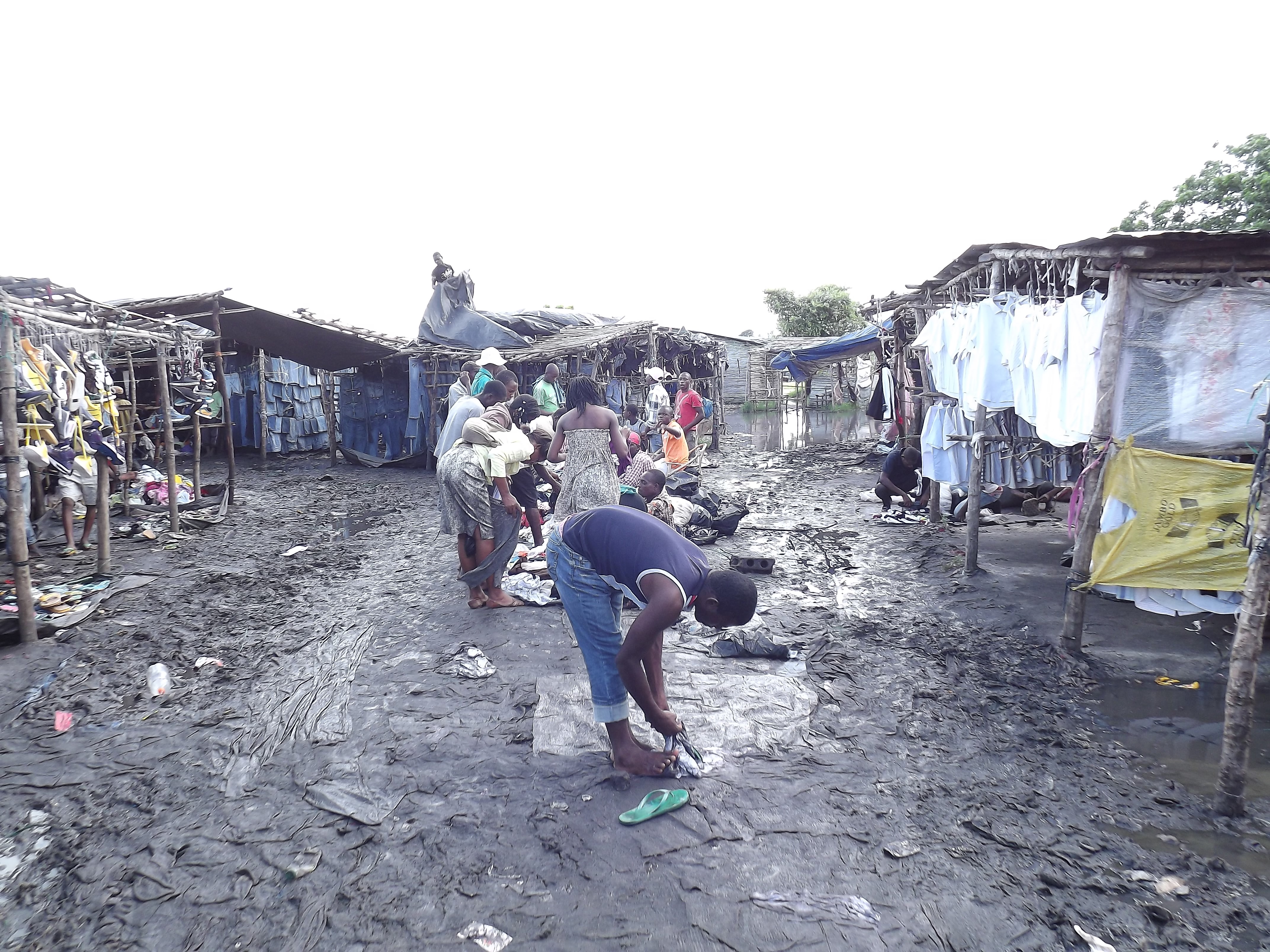 The Gotu market in Beira, Mozambique is one of the ugliest places I have ever seen. Hundreds of stick shacks with torn plastic sheets or mangled old tin for roofs make up the market place . Uncountable numbers of people push, shove and jostle each other in their search for whatever. Unimaginable body odors and the stench of accumulated urine make breathing an agony to be endured. In the rainy season, the time of the year I visited the market, the walkways between the stalls are ponds and rivers of black, oozy mud that works its way up your shoes as you walk through it. Every step taken is a reminder that you are just microns away from actually having your skin come in contact with that moist, filthy precursor to a soggy Hell. In an effort to create a dry walkway, unsold clothing, rags, bags and other refuse are thrown to the ground in what is nothing but a vain attempt at achieving their purpose. The useless effort results in a spongy surface that in itself becomes a muddy mess after just a few moments. The only pretty things in sight are the brightly colored mosquito nets flapping in the putrid, nostril -offending breeze. Of course, the mosquito nets serve as constant reminder that malaria is never more than one small proboscis prick away. Fruits and vegetables are piled on plastic sheets spread out on top of the mud. Passing feet hurl droplets of ooze onto them as they squish and splash past. Dogs walk by doing whatever dogs do. Occasionally the neatly stacked fruit piles would collapse, the fruit rolling into the mud and crud of the walkway. A swipe with a dirty rag would clean off the visible mud, and the stack would be reengineered.