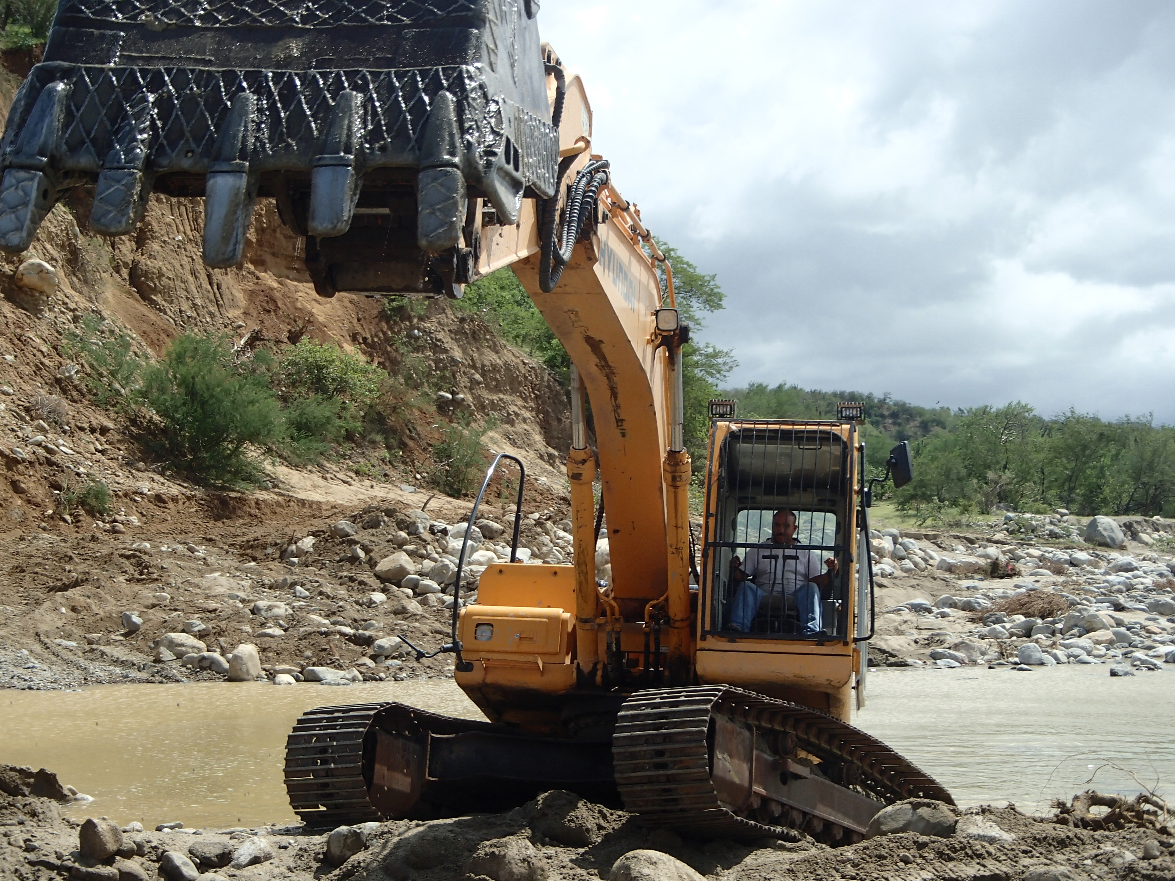 We had to wait while a temporary causeway was built to allow us to drive across the flooded arroyo.